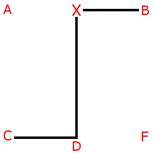 24. Bring the left foot to the right foot, and then move the right foot to A, forming a sitting stance toward D while executing a middle side strike to A with the right knife-hand.